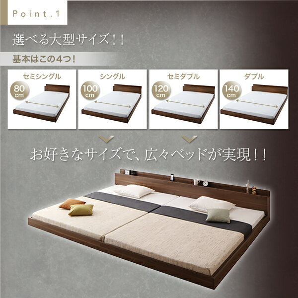 連結ベッド 幅220 キング ワイド 2人 3人 4人 ローベッド ロータイプ フロアベッド 低床 ベッド 連結 家族 連結可 つなげる シングル セミダブル 分割 セパレート 同色2台 ベッドフレーム ファミリーベッド 親子ベッド 宮付き 枕元 棚 ヘッドボード コンセント