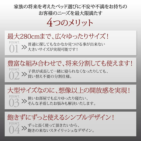 ファミリー ベッド 連結ベッド 大型ベッド 家族ベッド 親子ベッド ローベッド フロアベッド ファミリーベッド 家族 北欧 おしゃれ プレミアムボンネルコイル マットレス付き キング(SS+S)