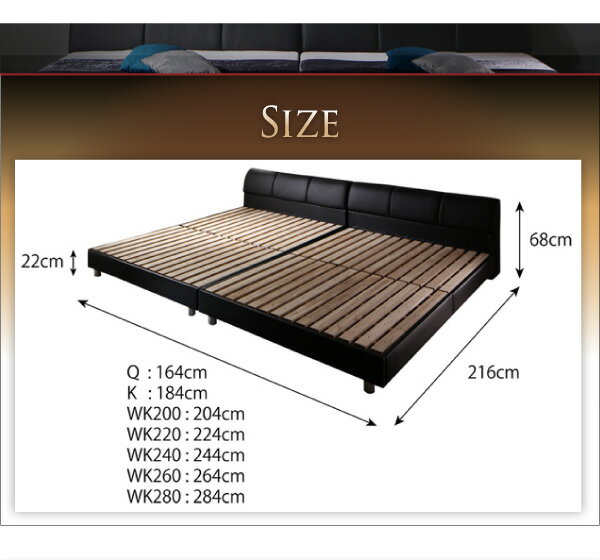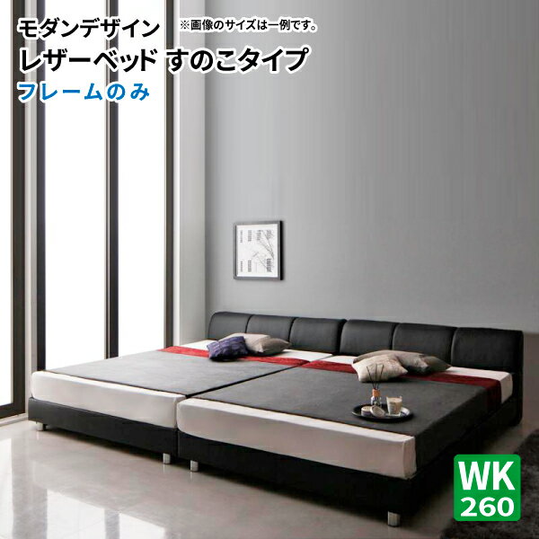 送料無料 大型 レザーベッド ワイドK260(SD+D) ローベッド WILHELM ヴィルヘルム フレームのみ すのこタイプ レザーフレーム 大型サイズ ワイドキングサイズ 親子ベッド 連結ベッド 040116124