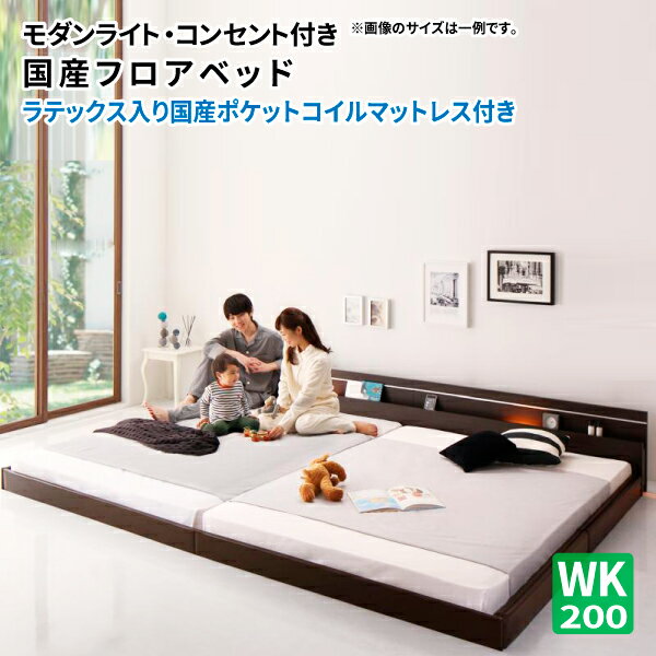 送料無料 ライト・コンセント付き国産フロアベッド ワイドK200 JOINT WIDE ジョイントワイド ラテックス入り国産ポケットコイルマットレス付き 連結ベッド 親子ベッド ファミリーベッド ワイドキングサイズ マット付き 500027923