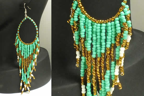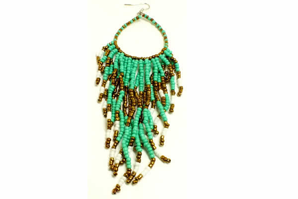 色鮮やかなビーズがゴージャスに揺れるボヘミアンスタイルにぴったりの手作りピアス。